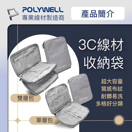 2. 【多功能收納】多層分格設計, 可各自擺放不同線材; 網袋可擺放充電寶, 充電器, 集線器… 等等