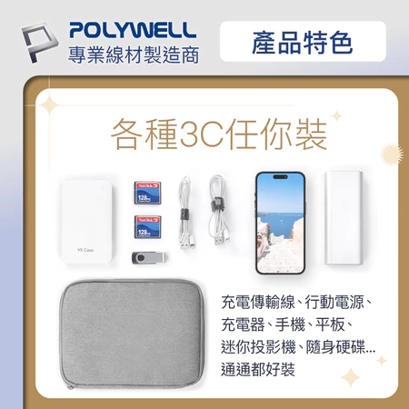 1. 【大容量】可收納8~9種線材和充電設備, 出外旅遊一包搞定